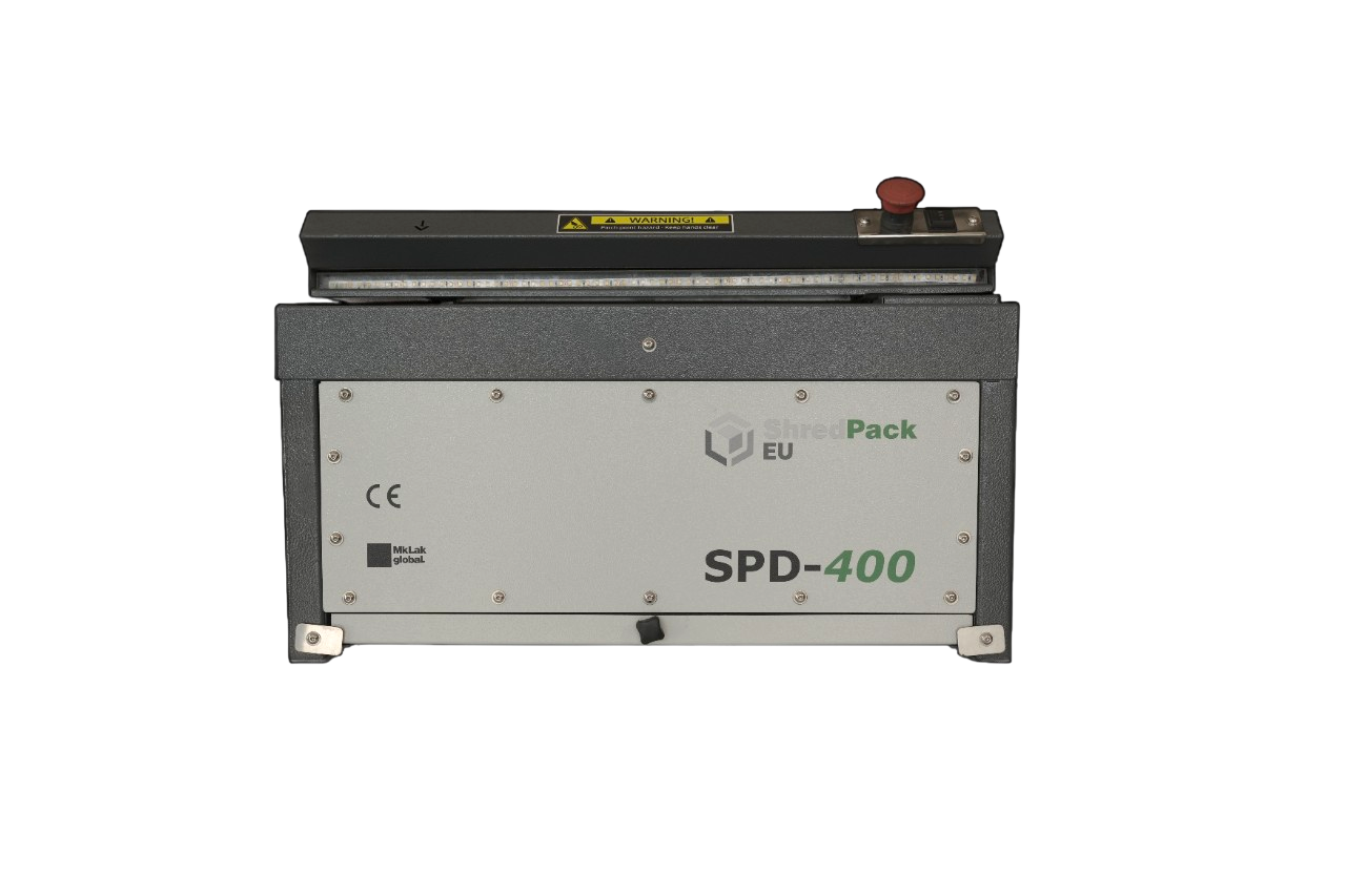 • Please note that while these machines will shred staples, SPD400 -1PH recommends customers remove them where possible as it will increase the wear on the cutting head and therefore shorten the life of the machine. Furthermore, most users will want to remove the staples anyway as any staples left behind may scratch the goods if used for packaging materials. The shredding of non-paper and cardboard materials like plastic tapes and strapping may damage your machine and negate your warranty.